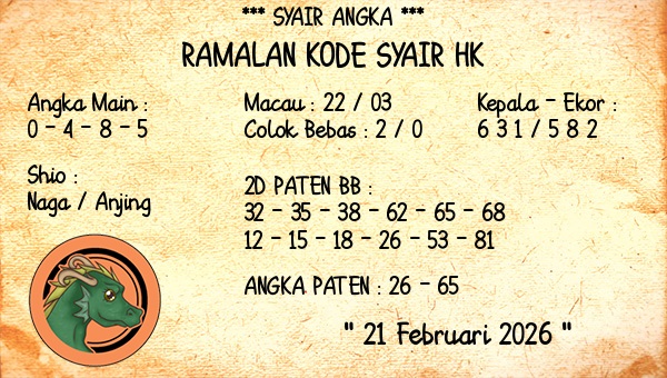 SYAIR PREDIKSI KELUARAN HK, 21-Feb-2026