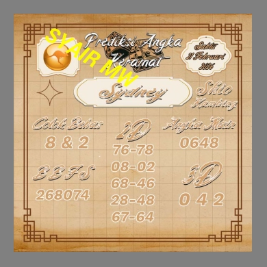 SYAIR PREDIKSI KELUARAN SYDNEY, 21-Feb-2026